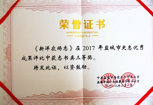 近日,在鹽城市委黨史工作辦公室、地方志編纂委員會(huì)辦公室開(kāi)展的2017年鹽城市史志優(yōu)秀成果評(píng)選活動(dòng)中,榮獲志書(shū)三等獎(jiǎng)。