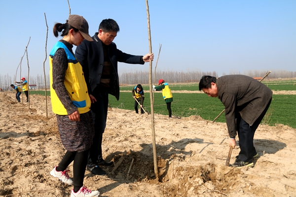 現場,場領導陳守軍、潘元海、戴學林、仰海洲、王煜明帶頭,志愿者熱情被點燃,紛紛加入“植樹大軍”,一字排開,倆倆一組分工明確,扶樹、填土、培土……一氣呵成。志愿者們以每2分鐘一棵樹的高效率,打破了歷年植樹速度之最。
