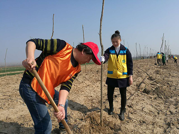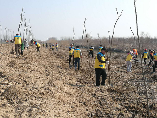 活動中,大家一派熱火朝天的忙碌景象。搬運(yùn)樹苗,揮鍬鏟土,扶苗填坑,踏土夯苗,三五人一組默契配合,你運(yùn)苗,我扶苗,他填土,認(rèn)真地完成著每一道工序,栽下一株株樹苗?;顒映掷m(xù)一個(gè)小時(shí),成功栽植3600余棵墨西哥落羽杉,取得了良好的成效。放眼望去,連片的樹苗錯落有致,在春風(fēng)的吹拂下煥發(fā)出盎然生機(jī)。此次活動的圓滿完成,為改善生態(tài)環(huán)境、助推綠色發(fā)展揮鋤添綠,吹響了全場大綠化攻堅(jiān)戰(zhàn)號角。