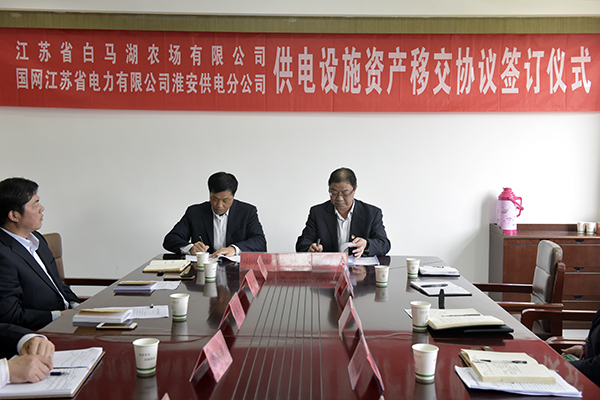 4月16日下午,江蘇省白馬湖農(nóng)場(chǎng)有限公司與國(guó)網(wǎng)江蘇省電力有限公司淮安供電分公司簽訂供電設(shè)施資產(chǎn)移交協(xié)議,開啟雙方攜手發(fā)展、合作共贏的新篇章。