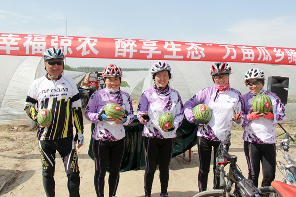 隨著公司黨委書記、董事長(zhǎng)、總經(jīng)理王世伯打響的發(fā)令槍聲,20多名龍河騎行隊(duì)隊(duì)員身著統(tǒng)一服裝,精神抖擻,英姿颯爽,從農(nóng)和廣場(chǎng)出發(fā),圍繞“?農(nóng)”牌西瓜核心生產(chǎn)區(qū)進(jìn)行健康騎行,全程共10.86公里。五月的農(nóng)場(chǎng)美景如畫,正是大棚西瓜和甜瓜收獲的季節(jié),在第三生產(chǎn)區(qū)大棚西瓜田頭,騎手們紛紛加入猜瓜游戲,誰猜的斤兩最接近,香甜的西瓜就歸誰,這場(chǎng)有趣的猜瓜游戲讓大家開心不已。在終點(diǎn)——有機(jī)農(nóng)莊,黃的農(nóng)友小蘭、紅的早春紅玉、翠綠的玉菇甜瓜讓干渴的騎手們大飽口福。
