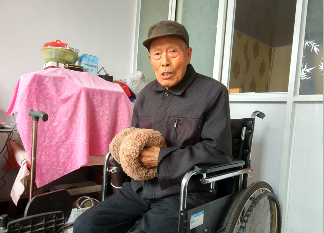 這名已經91歲高齡的老人名叫楊文才,是江蘇農墾淮海農場建國前的離休老干部,因為抗美援朝,1951年23歲的楊文才毅然報名參軍,后因戰(zhàn)局的扭轉,他從102師改編成農建四師,來到淮海農場屯墾戍邊。從1953年直到離休前,楊文才一直是單位的會計?,F在坐著輪椅來到藤架下休息聊天是他每天的必修課。
