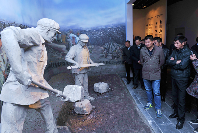 在新征程中勿忘“大鍬、扁擔(dān)”,就是要求我們要接過軍墾先輩們的精神接力棒,以腳踏實(shí)地的干勁,以舍我其誰的擔(dān)當(dāng),來為了讓更多的職工群眾能過上美好幸福生活的向往。特別是在時(shí)下廣泛開展的“不忘初心、牢記使命”的主題教育中,更需要我們深入貫徹黨的十九大精神,牢固樹立以人民為中心的思想,一切為了人民,一切依靠人民,唯有這樣,我們才能在新征程的道路上,無往而不勝。圖為客人們?cè)谵r(nóng)建四師陳列館中觀看以江希友和仇泉原型創(chuàng)作的“江大鍬”和“仇大筐”雕塑模型。