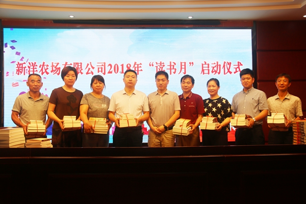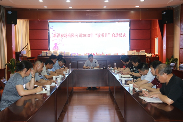 為進(jìn)一步深化對(duì)習(xí)近平新時(shí)代中國(guó)特色社會(huì)主義思想、黨的十九大精神的學(xué)習(xí)理解,推動(dòng)全公司職工形成濃厚的讀書(shū)學(xué)習(xí)氛圍,7月16日下午,新洋農(nóng)場(chǎng)有限公司舉行2018年“讀書(shū)月”啟動(dòng)儀式。工會(huì)主席戴學(xué)林,工會(huì)委員及基層工會(huì)主席等參加啟動(dòng)儀式。