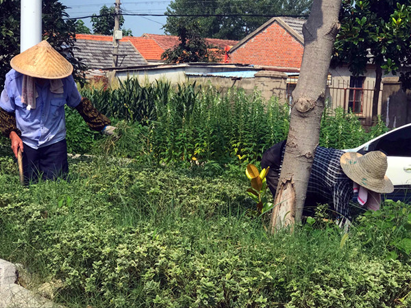 持續(xù)的高溫,下午二點(diǎn)的室外溫度達(dá)到38度左右,但在三河場(chǎng)部主干道兩側(cè)的綠化島內(nèi),環(huán)衛(wèi)工人們?nèi)匀欢c(diǎn)準(zhǔn)時(shí)到崗,由于夏季雜草生長(zhǎng)極快,綠化島內(nèi)的雜草已經(jīng)爬上了島內(nèi)的觀光苗木,為了不影響美感,大家便利用清掃馬路之余時(shí)間,對(duì)島內(nèi)的雜草進(jìn)行人工拔除。8月10日下午二點(diǎn)十分,筆者在農(nóng)場(chǎng)醫(yī)院門(mén)前的綠化島內(nèi)看到,環(huán)衛(wèi)工人們手戴著手套,戴著草帽,由于天氣太熱,大家都沒(méi)有戴口罩,而是每人的脖子上圍著條毛巾用于擦拭不停從臉上的汗水,衣服已經(jīng)被汗水浸濕透了,但大家仍然認(rèn)真細(xì)致的在拔除每一棵雜草,并不時(shí)的回頭看有沒(méi)有遺漏的。當(dāng)筆者問(wèn)他們?yōu)槭裁床槐荛_(kāi)高溫拔除時(shí),一位環(huán)衛(wèi)工人擦擦臉上的汗說(shuō),早晚涼時(shí)間他們還要清掃馬路,時(shí)間再不抓緊點(diǎn),草越長(zhǎng)越高就難看了,爭(zhēng)取兩天時(shí)間把兩邊島內(nèi)的草都拔干凈,這就是三河環(huán)衛(wèi)工人的情懷,不言苦,不說(shuō)累,用汗水描繪著三河的每一寸美麗畫(huà)圈。