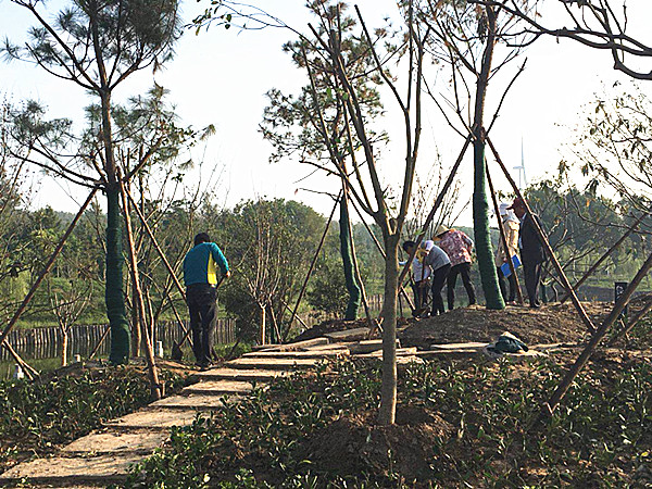 公司計劃10月份前全部完成公園及湖心島綠化,為推進工作進度,他們搶抓一切可以利用的時機,每天都有30人在島上,他們早上六七點到班,下午六點多下班,大家鼓足勢氣,大干特干,于9月25日提前完成湖心島全部綠化工程。