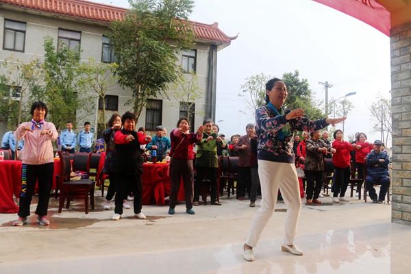 活動(dòng)現(xiàn)場,老年文藝骨干們給我們準(zhǔn)備了精彩的表演,太極拳、柔力球充分展現(xiàn)了老年人飽滿的精氣神,民間傳統(tǒng)文化《送夫》、《鵝毛大雪》等淮劇表演,贏得掌聲不斷,服務(wù)站工作人員的詩詞朗誦《歲歲重陽 今又重陽》飽含了尊老愛老之情,駐場部隊(duì)的“三句半”表演更是將活動(dòng)推向了高潮,最后,活動(dòng)在歡快的五行健身操中落下帷幕。
