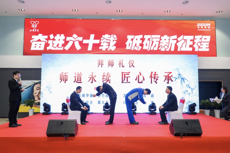 活動中,蘇舜公司黨委書記、董事長孫繼洲和總經(jīng)理曾慶業(yè)分別致辭,現(xiàn)場播放了蘇舜發(fā)展歷程VCR,老員工代表及師徒代表分享了情濃蘇舜故事,參加慶典活動的領(lǐng)導和員工觀看了節(jié)目表演。