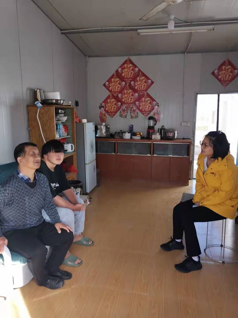 她出月子后,于10月17日帶著慰問(wèn)金、大米、食用油等和李書(shū)記一起來(lái)到虞道虎家探望。通過(guò)深入交流了解到,他媽媽是外地人,在他4歲的時(shí)候拋下他就再也沒(méi)有回來(lái),他爸爸身體殘疾又患有糖尿病伴隨著并發(fā)癥,致使視力嚴(yán)重下降模糊看不清,原先還能靠開(kāi)三輪車帶乘客掙點(diǎn)微薄的生活費(fèi),現(xiàn)如今也只能作罷,面對(duì)如此不堪重負(fù)的家庭生活和上學(xué)的雙重壓力,家庭收入幾乎為零,經(jīng)過(guò)村、鎮(zhèn)的申請(qǐng),縣政府相關(guān)部門的審批,最終他爸爸獲得了殘疾補(bǔ)貼和民政低保收入,家庭全部收入也僅限于此。“黨員媽媽”王靖與虞道虎的交談中,得知他本人對(duì)未來(lái)很有想法,目前就讀于揚(yáng)州技師學(xué)院,五年制大專,數(shù)控專業(yè),他計(jì)劃好好學(xué)習(xí)順利畢業(yè)后將專轉(zhuǎn)本,繼續(xù)學(xué)歷深造以便日后好去蘇南就業(yè),考慮蘇南相對(duì)高工資可以為窮困的家庭和年邁的父親減輕壓力。聽(tīng)此,王靖很欣慰,勸導(dǎo)父親和虞道虎,困難是有,但是暫時(shí)的,只要虞道虎肯努力學(xué)習(xí),保持積極樂(lè)觀的心態(tài),未來(lái)一定可期。