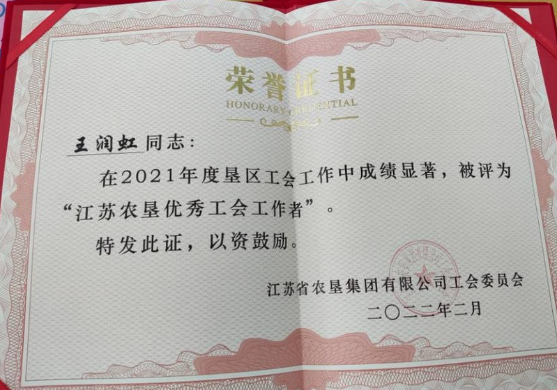 漫漫人生路,一路無悔走;28度風(fēng)雨28度春秋,風(fēng)霜雨雪搏激流!今年50歲的王潤虹,中共黨員,大專學(xué)歷,1994年8月參加工作,現(xiàn)任江蘇省黃海農(nóng)場公司工會女工委主任、審計部主管、計劃財務(wù)部主管等職。王潤虹沒有轟轟烈烈、驚天動地的感人事跡,但她有樂于奉獻(xiàn)的精神;她從事工會、審計和財務(wù)工作多年來,憑著對企業(yè)和職工真誠無私的愛,在黨史學(xué)習(xí)教育中以實(shí)際行動踐行為民服務(wù)宗旨;心系職工居民冷暖,做職工的貼心人;為困難職工排憂解難,付出了自己的“心血與汗水”。使工會等工作在農(nóng)場公司黨委的領(lǐng)導(dǎo)下,取得顯著成績。黃海農(nóng)場公司工會在2021年度被全國婦聯(lián)授予“全國巾國建功先進(jìn)集體”;王潤虹本人在2021年度被評為“江蘇農(nóng)墾優(yōu)秀工會工作者”;同年被響水縣婦聯(lián)評為年度綜合“先進(jìn)個人”;她還連續(xù)多年被農(nóng)場公司黨委表彰為“先進(jìn)工作者”。