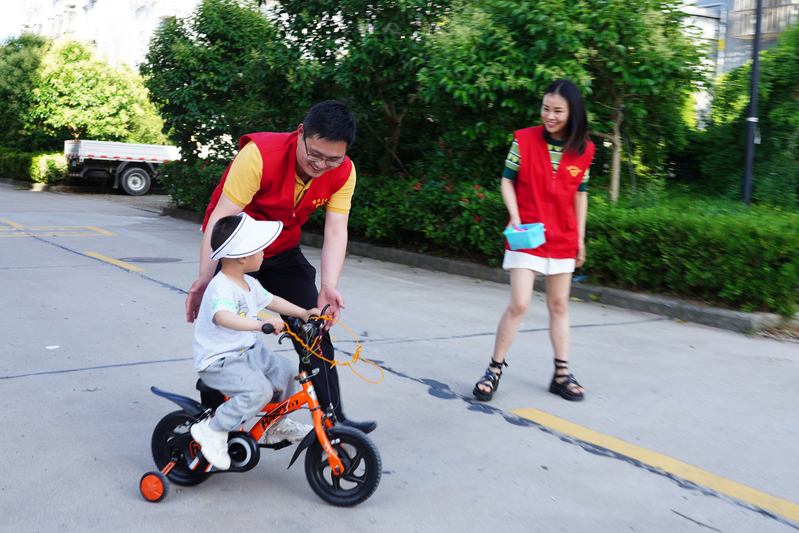 6月10日下午,弶港農(nóng)場(chǎng)團(tuán)委“愛心爸爸”“愛心媽媽”帶著兒童繪本和玩具,走進(jìn)困境兒童小浩浩的家里。“奧迪曼與怪獸作戰(zhàn)斗…… ”夢(mèng)想小屋的書桌前,浩浩依偎在“愛心媽媽”孫菁懷里,聽著有聲有色的奧特曼的故事?!皠e怕,勇敢地往前騎,我在身后保護(hù)你”“我們一起來比賽,看誰(shuí)快”小區(qū)的空地上,在“愛心爸爸”陳海榮鼓勵(lì)下,浩浩騎著兒童單車,開朗的笑聲在小區(qū)里飄蕩。一起玩拼圖、畫畫、做游戲,幾個(gè)小時(shí)下來,不愛說話的小浩浩從最初的羞澀生疏,到漸漸展露笑容,短暫的相聚中,與“愛心爸媽”建立了深厚的信任和感情。