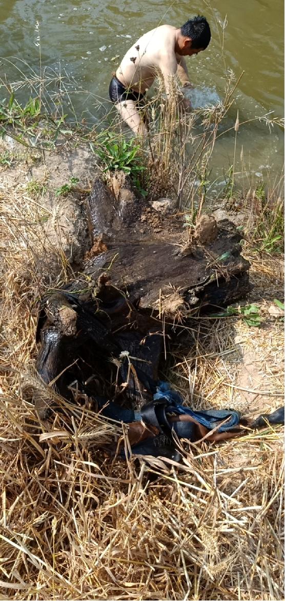 這時(shí)正好路過這里的27大隊(duì)職工,共產(chǎn)黨員周建明看到后,看著快要漫上田埂的水流,為了盡快解決問題,他想都沒想,立刻脫了外衣,毅然跳進(jìn)一人多深的河里。他時(shí)而在河里反復(fù)摸索,時(shí)不時(shí)地悶下水去,摸出了一堆樹根和破衣爛衫。