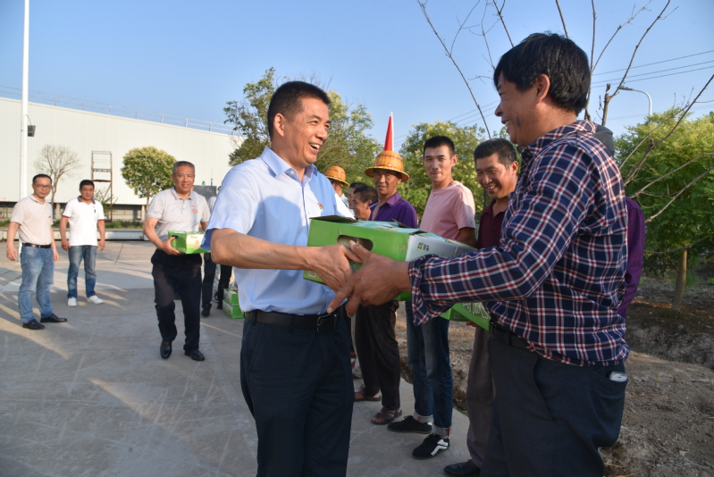 在倉(cāng)儲(chǔ)部門(mén)口,公司黨委書(shū)記、董事長(zhǎng)郭世平,黨委副書(shū)記、總經(jīng)理吳善河率公司領(lǐng)導(dǎo)班子成員為89名勞務(wù)外包一線工作人員送去了清甜涼爽的黃金瓜,同時(shí)親切地詢問(wèn)了一線員工的身體狀況和工作情況,對(duì)他們的辛勤付出表示感謝,并千萬(wàn)叮囑大家炎夏期間注意避暑、保重身體,合理安排工作時(shí)間,避開(kāi)高溫酷暑時(shí)段,也希望他們能夠深刻感受到公司黨委的人文關(guān)懷和“在廠如同在家”的幸福感。