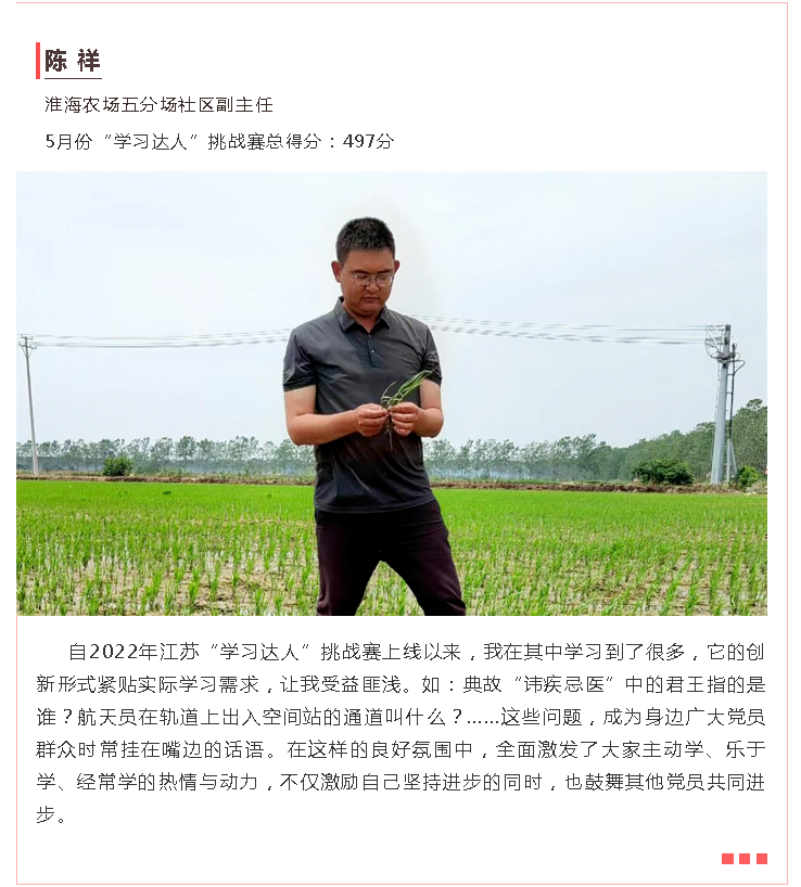 為推動(dòng)黨史學(xué)習(xí)教育常態(tài)化長(zhǎng)效化,進(jìn)一步建好用好“學(xué)習(xí)強(qiáng)國(guó)”學(xué)習(xí)平臺(tái),射陽(yáng)縣根據(jù)省、市、縣的統(tǒng)一部署,5月中旬以來(lái),全縣3.5萬(wàn)余名“學(xué)習(xí)強(qiáng)國(guó)”學(xué)員積極參與“喜迎二十大奮進(jìn)新征程”——2022江蘇“學(xué)習(xí)達(dá)人”挑戰(zhàn)賽,一大批“學(xué)習(xí)達(dá)人”脫穎而出,形成了以賽促學(xué)、比學(xué)趕超的生動(dòng)局面。