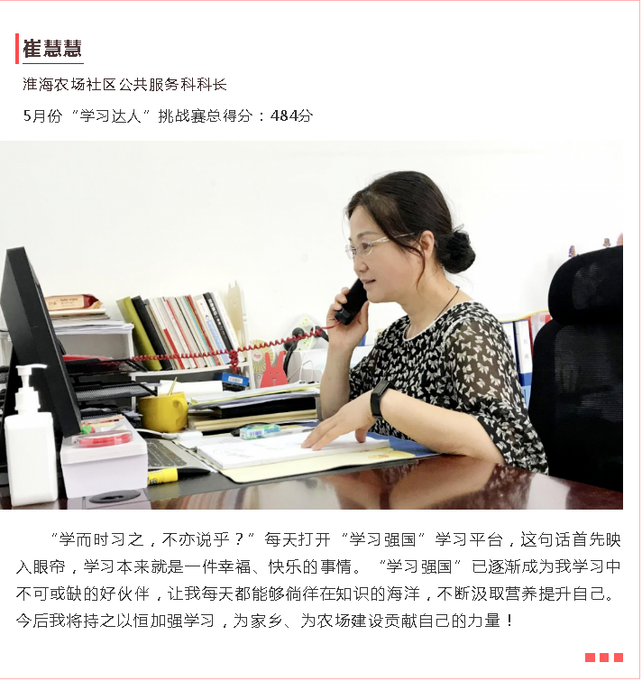 為充分展示“學(xué)習(xí)達(dá)人”風(fēng)采,根據(jù)射陽(yáng)縣“強(qiáng)國(guó)復(fù)興有我”群眾性主題宣傳教育活動(dòng)安排,射陽(yáng)宣傳推出“訪學(xué)習(xí)達(dá)人看家鄉(xiāng)變化”主題尋訪萬(wàn)里行活動(dòng)第一期,在全縣5月份最厲害的11名“學(xué)習(xí)達(dá)人”中,淮海的“學(xué)習(xí)達(dá)人”馮輝、陳祥、崔慧慧、劉玉華躋身其中,讓我們一起來(lái)聽(tīng)聽(tīng)淮海的“學(xué)習(xí)達(dá)人”們?cè)诠ぷ髦小⑸钌系?/span>心得感悟吧!圖為淮海學(xué)員“學(xué)習(xí)達(dá)人”們的心聲感悟。