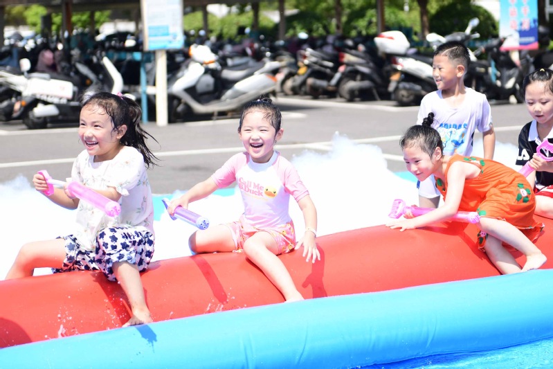 夏末秋初,秋老虎的威力不容小覷。結(jié)合連云港海濱城市特點(diǎn),公司準(zhǔn)備了消暑降溫的泡泡大作戰(zhàn)游戲活動(dòng)。在一片蔚藍(lán)中,飛揚(yáng)的泡沫與激起的水花見證了孩子們的快樂。