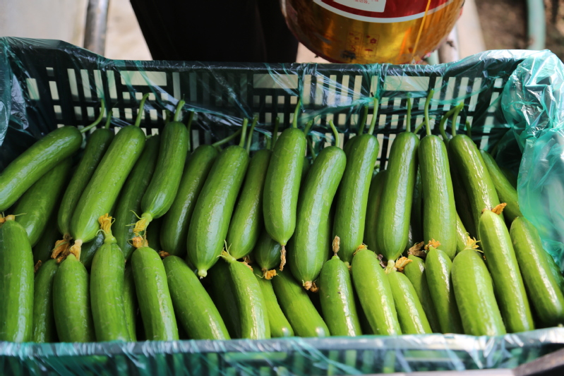 生產(chǎn)中,技術(shù)人員根據(jù)棚溫、濕度等變化規(guī)律合理進(jìn)行調(diào)節(jié),為黃瓜生長(zhǎng)提供適宜的環(huán)境,提高黃瓜的品質(zhì),經(jīng)過(guò)科學(xué)管理,目前已經(jīng)成功上市銷(xiāo)售。由于目前市場(chǎng)上水果黃瓜供應(yīng)較少,加之崗埠水果黃瓜品質(zhì)優(yōu)良,收到了保真超市和市區(qū)一些水果連鎖店的熱捧,訂單紛至沓來(lái)。“現(xiàn)在水果黃瓜剛上市,產(chǎn)量每天僅4、5百斤,根本不夠搶的,今天都摘了第二遍了?!贝奘科揭贿吤β抵?,一邊說(shuō)。