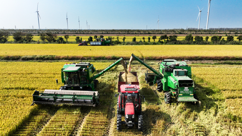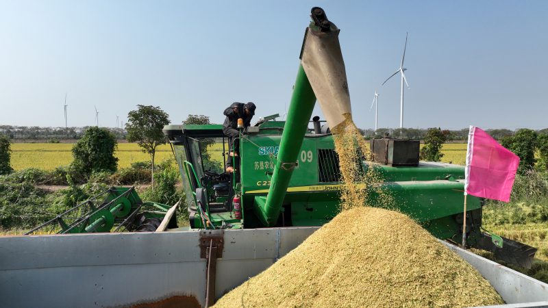 面對(duì)不穩(wěn)定天氣因素,蘇墾農(nóng)發(fā)新洋分公司強(qiáng)化機(jī)械保障,本部準(zhǔn)備收割機(jī)58臺(tái)套,運(yùn)糧車53臺(tái),另調(diào)度好26臺(tái)小型履帶式收割機(jī),隨時(shí)應(yīng)對(duì)突發(fā)天氣情況。同時(shí),加強(qiáng)場(chǎng)頭糧食調(diào)運(yùn)管理,備好防雨防霉變應(yīng)急保障設(shè)施設(shè)備,確保烘干設(shè)備正常運(yùn)轉(zhuǎn)和安全,實(shí)現(xiàn)秋糧顆粒歸倉(cāng)。