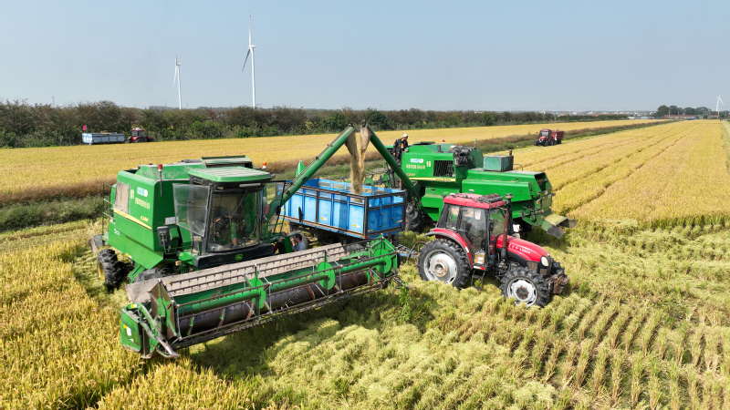 今年“三秋”是集團(tuán)公司第二次黨代會(huì)勝利召開后的第一個(gè)農(nóng)忙,做好“三秋”工作意義重大,黨委班子成員靠前指揮,深入田間查看水稻收割情況。稻田接連成片,稻穗迎風(fēng)擺動(dòng),收割機(jī)馬力全開、縱橫馳騁,收割、脫粒、裝車……一氣呵成,一派豐收的喜人景象。