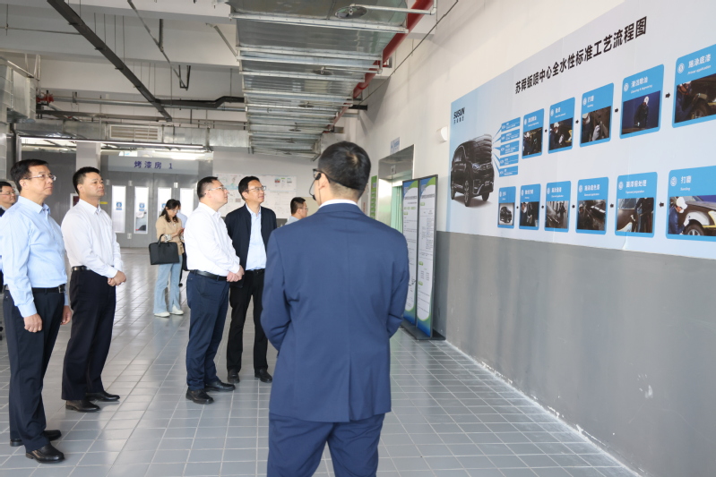 在蘇舜公司鈑噴中心“綠島”項(xiàng)目現(xiàn)場(chǎng),督察組詳細(xì)了解了全水性標(biāo)準(zhǔn)工藝噴涂流程、傳統(tǒng)溶劑性油性漆與水性漆環(huán)保的參數(shù)對(duì)比。在中涂預(yù)噴綜合房、水性漆環(huán)保型烤漆房、全水性油漆調(diào)漆間、VOCs凈化治理裝置及全封閉漆后處理工位等點(diǎn)位,督察組聽(tīng)取了設(shè)備運(yùn)行情況介紹,詢問(wèn)了廢棄材料回收處置情況。督察組還聽(tīng)取了蘇舜公司生態(tài)環(huán)保工作和鈑噴中心“綠島”項(xiàng)目建設(shè)情況的匯報(bào),詢問(wèn)了園區(qū)雨水回收綜合利用系統(tǒng)使用情況。