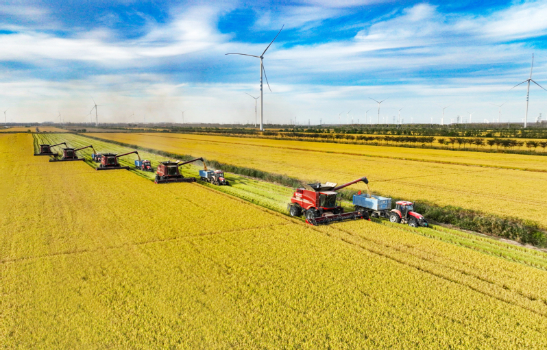 2023年10月28日,在蘇墾農(nóng)發(fā)新洋分公司新南生產(chǎn)區(qū)19大隊(duì)的高標(biāo)準(zhǔn)農(nóng)田上,五臺凱斯7088大型聯(lián)合收割機(jī)穿梭在稻田中搶收水稻。蘇墾農(nóng)發(fā)新洋分公司搶抓晴好天氣,發(fā)揮農(nóng)墾企業(yè)機(jī)械化優(yōu)勢,確保秋糧顆粒歸倉。