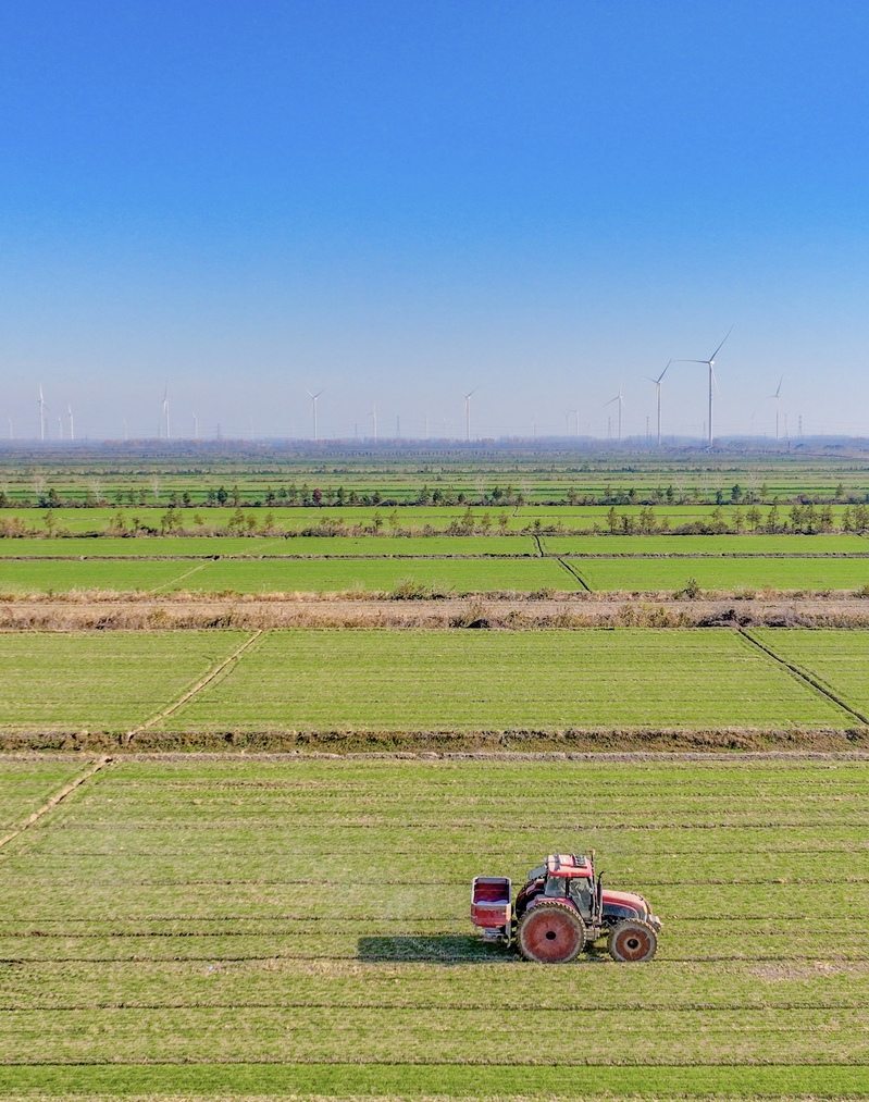 12月9日,江蘇省鹽城市射陽(yáng)縣的一座農(nóng)場(chǎng)內(nèi),農(nóng)機(jī)正在進(jìn)行田間管理作業(yè)。入冬以來(lái),農(nóng)場(chǎng)搶抓晴好天氣,實(shí)施綜合田管,為夏糧增產(chǎn)豐收打好基礎(chǔ)。張偉生攝(中經(jīng)視覺(jué))