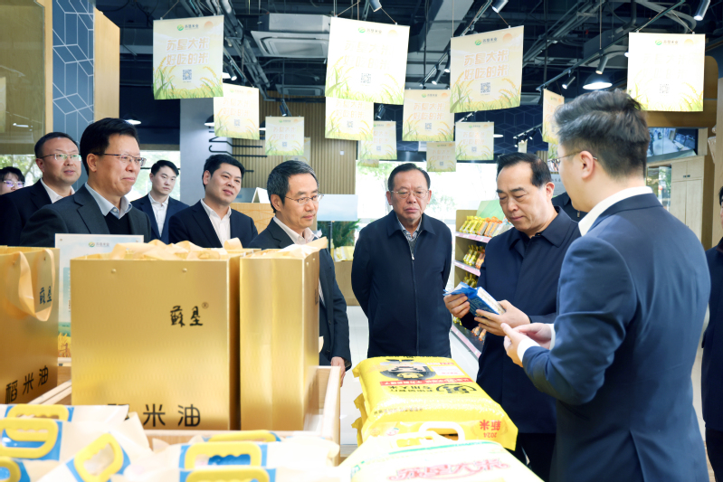 王榮平一行來到蘇墾尚膳門店,了解江蘇農墾糧油產品和精深加工食品,調研科技創(chuàng)新、智慧農業(yè)、農產品全程質量追溯等工作情況;在江蘇農墾展示廳,詳細了解農墾創(chuàng)業(yè)及改革發(fā)展歷程。