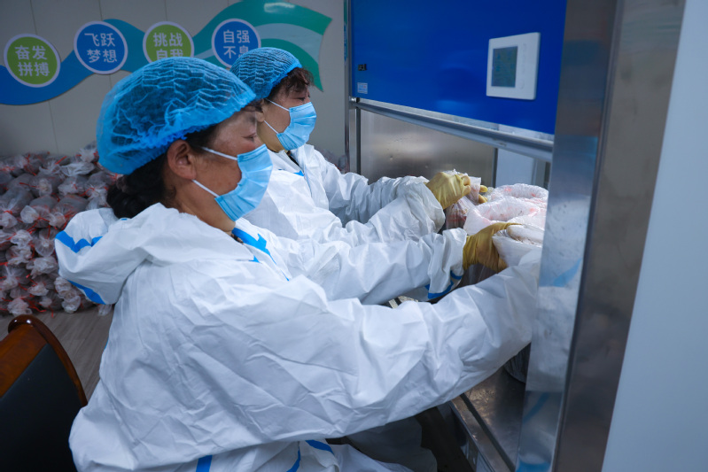 近日,在云臺(tái)農(nóng)場(chǎng)興墾科技工作室內(nèi),工作人員正在進(jìn)行靈芝接種工作。整個(gè)接種過程在嚴(yán)格的無菌環(huán)境下進(jìn)行,工作人員將靈芝菌種小心地放入椴木孔洞中,為靈芝生長創(chuàng)造良好的條件。據(jù)悉,本次接種工作將處理15000個(gè)菌棒,菌絲發(fā)滿后將進(jìn)行定植工作。
