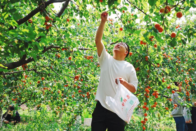 又是一年杏子黃,碩果壓枝正飄香。眼下,江蘇淮安盱眙三河農(nóng)場的杏林迎來豐收,果香四溢的杏子掛滿枝頭,果農(nóng)搶抓晴好天氣進(jìn)行采摘、分揀、裝箱,一派忙碌的豐收景象。 作者:錢厚紅 韓磊