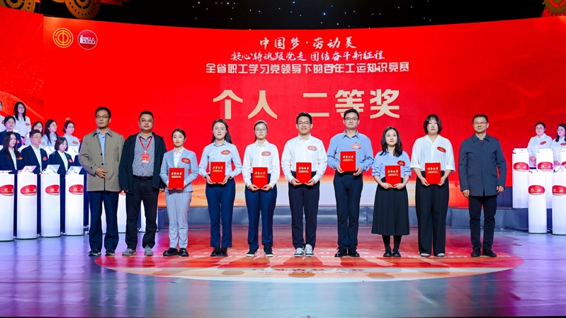 10月24日,由江蘇省總工會舉辦的“中國夢·勞動美——凝心鑄魂跟黨走,團(tuán)結(jié)奮斗新征程”全省職工學(xué)習(xí)黨領(lǐng)導(dǎo)下的百年工運(yùn)知識競賽活動在江蘇省廣播電視總臺1號演播大廳舉行,來自全省各地市和產(chǎn)業(yè)工會的23支代表隊(duì)、69名精英選手參與比賽。上午的初賽中,集團(tuán)代表隊(duì)的欒薇、王淑玉、黃昊之3名隊(duì)員克服備賽人員分散、備賽時間短等困難,在初賽三輪比拼中越戰(zhàn)越勇,以團(tuán)體第五名的成績殺入下午總決賽,決賽中隊(duì)員們團(tuán)結(jié)拼搏、穩(wěn)定發(fā)揮,最終獲得1名個人二等獎、2名個人三等獎和團(tuán)體銅獎的好成績。