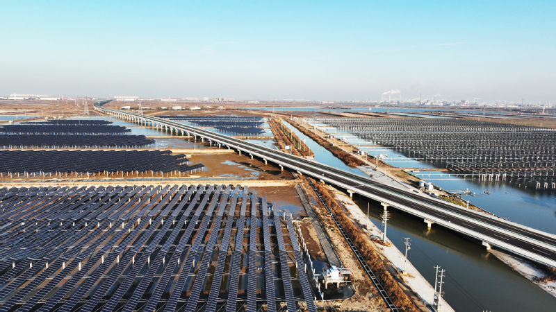 圖為江蘇農墾東辛農場實施的2580畝漁光一體集中式光伏發(fā)電項目,年發(fā)電量約1.48億千瓦時。