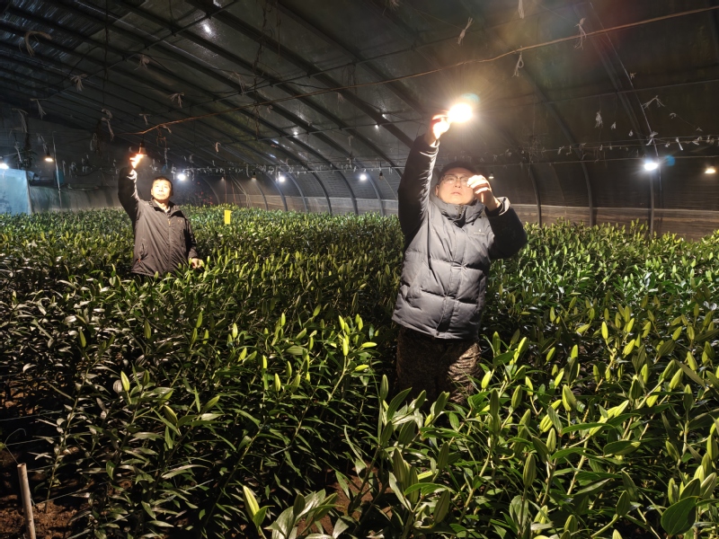 崗埠農(nóng)場則聚焦高效農(nóng)業(yè)示范園作物分類管護(hù),組織人員對所有大棚骨架、保溫棉被進(jìn)行全面檢修加固,為1.5萬株百合花苗噴施抗逆性葉面肥,對西紅柿苗開展精準(zhǔn)打杈、澆水管理,提前準(zhǔn)備40余臺(tái)套熱風(fēng)機(jī)、水源熱泵等加溫設(shè)備,其中31號大棚通過水源熱泵將夜間溫度穩(wěn)定在16.5℃,有效保障作物生長關(guān)鍵期需求。