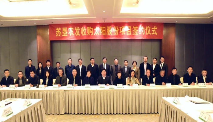 11月15日下午,蘇墾農(nóng)發(fā)股份公司在南京隆重舉辦收購太陽股份項目簽約儀式,集團公司總經(jīng)理、蘇墾農(nóng)發(fā)股份公司董事長胡兆輝主持本次儀式并講話,集團公司黨委委員、蘇墾農(nóng)發(fā)股份公司總裁蘇志富,太陽股份董事
