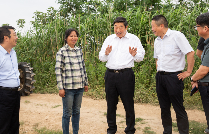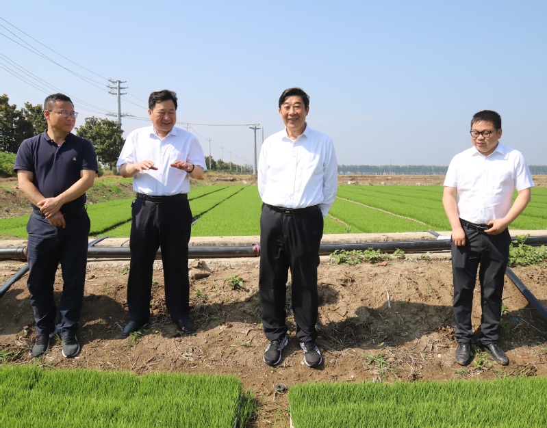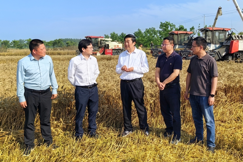 6月1日下午,集團公司黨委副書記、總經理胡兆輝到新曹調研指導“三夏”工作和農場公司產業(yè)發(fā)展。胡兆輝先后察看了蘇墾農發(fā)新曹分公司油菜收割現場、小麥收割現場、水稻秧池、耕整打作現場、糧食烘干線和晾曬場、高標準農田建設項目區(qū),以及農場公司原絲綢廠廠房、日本矮麥冬套種基地,認真聽取有關人員的情況介紹,與一線工作人員親切交談,詳細了解蘇墾農發(fā)新曹分公司“三夏”工作進展和農場公司產業(yè)發(fā)展情況,對新曹“同舉一面旗、共下一盤棋、全力戰(zhàn)三夏”的做法表示肯定,對新曹前段時間大力支持“淮海啤麥會戰(zhàn)”給予贊揚,對新曹一班人團結奮斗、激情創(chuàng)業(yè)的氛圍表示贊賞。他指出,今年“三夏”生產形勢十分嚴峻,新曹作為墾區(qū)大場之一,要牢記“國之大者”,強化責任擔當,全力做好“三夏”各項工作,為墾區(qū)“三夏”全勝作出更大貢獻。他要求,要強化防災抗災減災意識,圍繞“五不”和“五確?!蹦繕?,立足于搶,著眼于快,抓住當前晴好天氣,保種子、保原糧、保栽插進度,把豐收在望變成豐收到手,一著不讓同步打牢秋超增收基礎;要樹牢墾區(qū)一盤棋思想,針對可能出現的惡劣天氣,提前做好“南機北援”準備工作,全力支援兄弟單位“三夏”搶收搶種。他強調,開展主題教