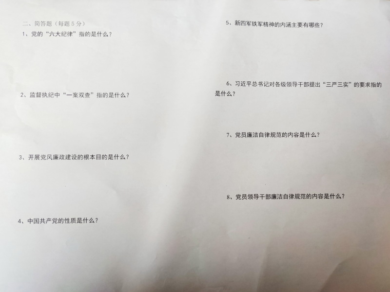 在測(cè)試前,派出所對(duì)廣大干警和聯(lián)防隊(duì)員進(jìn)行了一次黨史的集中學(xué)習(xí)和輔導(dǎo),輔導(dǎo)結(jié)束后,測(cè)試采用開卷限時(shí)的形式進(jìn)行,內(nèi)容主要包括黨史、新中國(guó)史、改革開放史、社會(huì)主義發(fā)展史等。測(cè)試形式以填空題、簡(jiǎn)答題兩種形式。在夜??荚?/span>現(xiàn)場(chǎng),大家專心致志認(rèn)真答題,遵守紀(jì)律,考試氣氛濃厚。