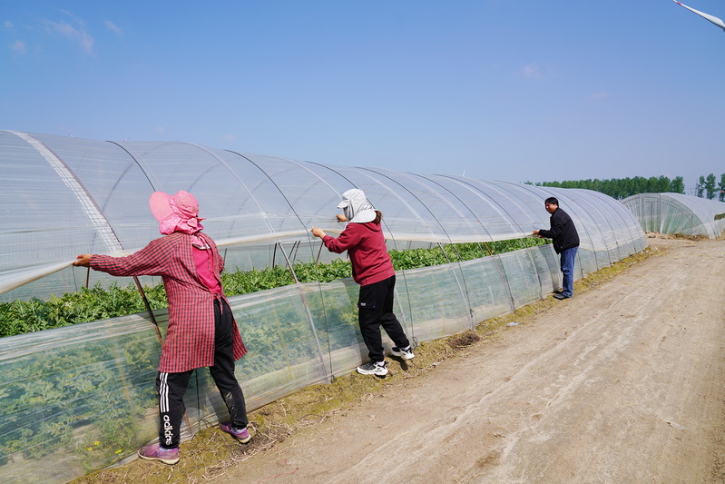 田間,種植戶江月香正在給瓜棚揭膜透氣,看到陳主任連聲感謝說,“要不是昨天你幫忙帶人將瓜棚整理好,我和隔壁田的老單就得損失好幾十萬元了。”隔幾條田正在西瓜大棚里授粉的老單聽到陳主任的說話聲,連忙從棚里走來說感謝。4月29日晚,受東北冷渦影響,8-10級的雷暴大風(fēng)夾雜著冰雹襲擊農(nóng)場,第三生產(chǎn)區(qū)12連的西瓜生產(chǎn)基地有十多家西瓜種植戶受到不同程度的損害,其中位于風(fēng)口處的小江和老單家有近40個大棚受損,望著整條田被風(fēng)刮飛的大棚,江月香急得直掉眼淚。天氣報告預(yù)測還有大風(fēng)和雷暴發(fā)生,當(dāng)前全場都在賣西瓜,用工緊張,半天沒找到幾個幫忙的人,下雨前大棚不整理好,眼看就要到手的收成就全完了。陳主任急忙打電話組織人員,并將生產(chǎn)區(qū)管理人員喊到田間,一起幫助拉膜,束繩,直到傍晚才將受損田塊全部整理好,然后將生產(chǎn)區(qū)所有種植戶都一家一家全部查看一遍他才踏上回家的路。