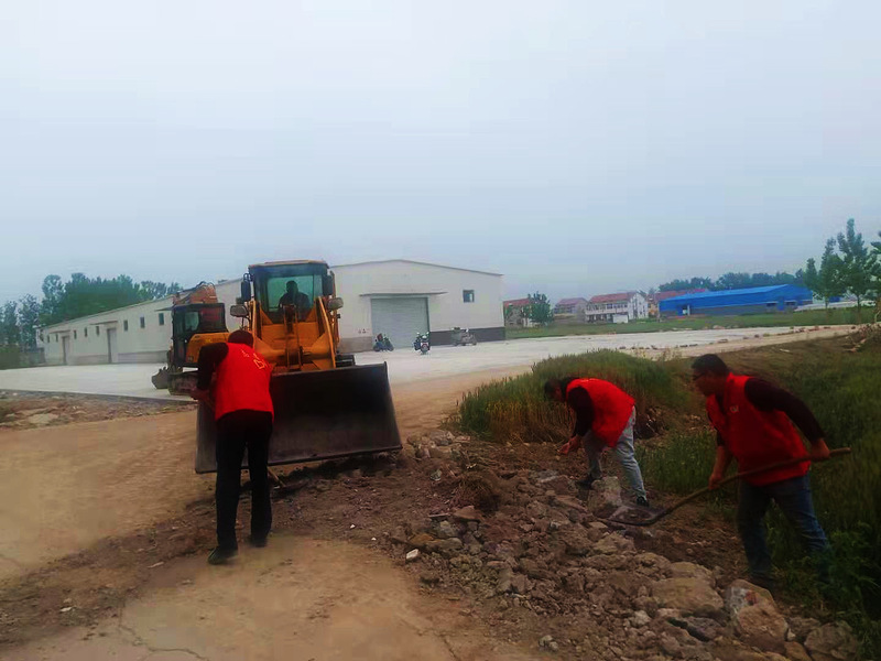 為了更好的服務(wù)群眾,盡快解決路面毀損問(wèn)題,黨員志愿者們通過(guò)協(xié)商,決定利用單位現(xiàn)有的工程碎料鋪路,他們先是將塊頭比較大的水泥石塊鋪在路邊,穩(wěn)定路基。為了鋪完的路更加穩(wěn)固更加寬敞,先是徒手將石塊一個(gè)一個(gè)的堆砌起來(lái),然后填入碎土,經(jīng)過(guò)鏟車(chē)幾番碾壓,使擴(kuò)寬的路面與主路持平。主路上先是用石塊將坑洼處填平,然后鋪上碎石面,碾壓平整。通過(guò)一個(gè)下午的努力,終于將毀損的路段鋪平鋪整。