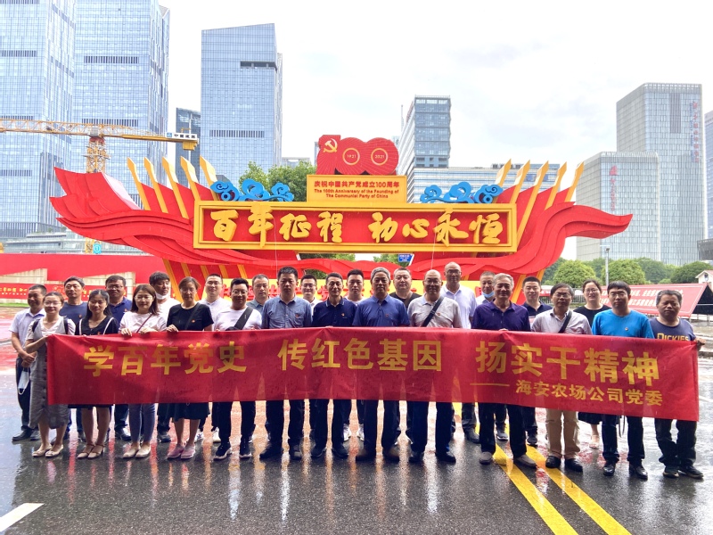 為全面學(xué)習(xí)中國共產(chǎn)黨在江蘇百年波瀾壯闊的奮斗歷程,7月8日,海安農(nóng)場公司黨委組織到南京參觀“百年征程 初心永恒——中國共產(chǎn)黨在江蘇歷史展”。黨委書記邱海濤、黨委理論中心組全體成員、黨支部書記、生產(chǎn)區(qū)主任及機關(guān)全體參加了活動。