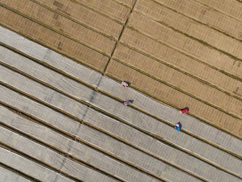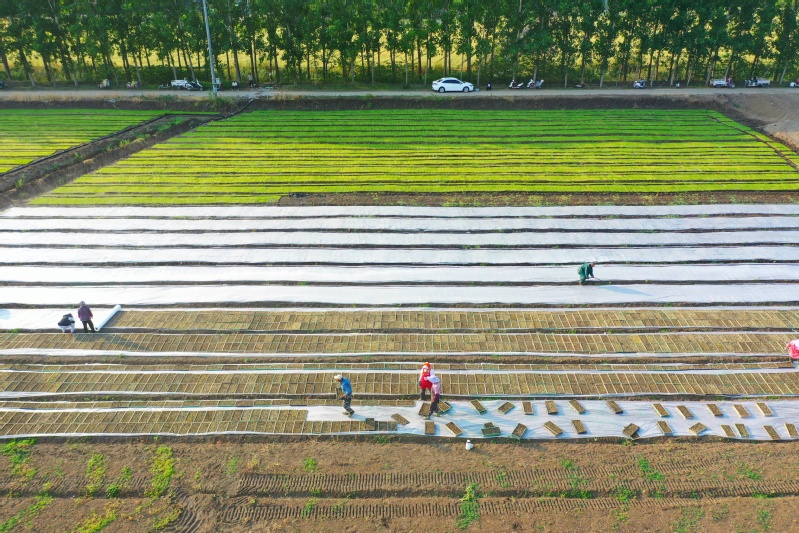 5月20日,崗埠農(nóng)場(chǎng)高效農(nóng)業(yè)示范園內(nèi),新改造的科技育苗大棚迎來(lái)首次育苗工作,工作人員在大棚里進(jìn)行剪枝、培土、擺盤(pán)、扦插、噴淋等作業(yè)。據(jù)悉,育苗大棚引進(jìn)物聯(lián)網(wǎng)智能控制系統(tǒng),實(shí)現(xiàn)對(duì)大棚內(nèi)溫、光、水、肥、空氣等環(huán)境因素的全面調(diào)節(jié)和優(yōu)化,有效提高育苗成活率,提升生產(chǎn)效率。