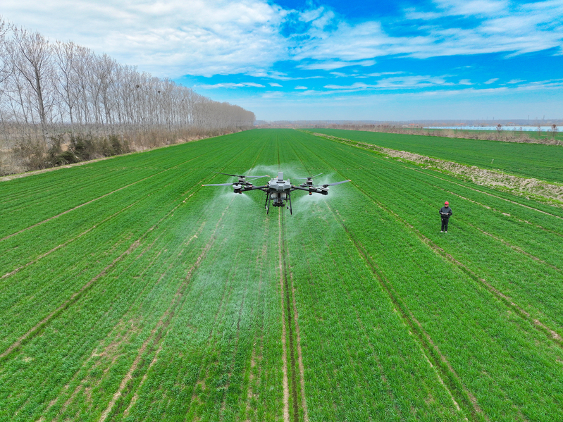 3月13日,江蘇省鹽城市射陽(yáng)縣,在江蘇農(nóng)墾新洋農(nóng)場(chǎng)的一處高標(biāo)準(zhǔn)農(nóng)田里,農(nóng)技人員正在操縱一臺(tái)新式植保無(wú)人機(jī),為小麥開(kāi)展春季施肥作業(yè)。當(dāng)前,新洋農(nóng)場(chǎng)6萬(wàn)畝高標(biāo)準(zhǔn)農(nóng)業(yè)生產(chǎn)基地進(jìn)入春管關(guān)鍵階段,該農(nóng)場(chǎng)搶抓農(nóng)時(shí),積極開(kāi)展春季田管作業(yè),助力夏糧穩(wěn)產(chǎn)增收。