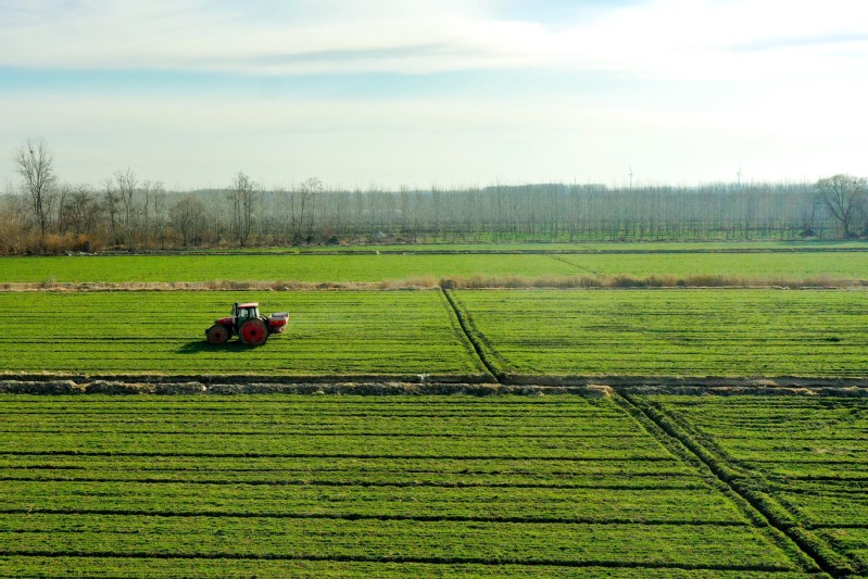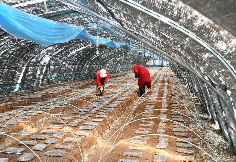 隨著氣溫逐漸升高,為保障羊肚菌正常生長發(fā)育,2月10日上午,淮海產(chǎn)業(yè)發(fā)展中心大棚基地工作人員,積極抓住羊肚菌原基萌發(fā)這一關(guān)鍵節(jié)點,有條不紊地進(jìn)行揭膜、搭小棚等催菇前的準(zhǔn)備工作。“今天是我們第一批羊肚菌播種后的第73天,目前有11個種植大棚內(nèi)的羊肚菌菌霜已經(jīng)完全消退,且出現(xiàn)了大量的原基,說明這批羊肚菌的菌絲已經(jīng)達(dá)到成熟,進(jìn)入下一個發(fā)育階段?!毖蚨蔷N植技術(shù)員袁亞洲介紹說,“羊肚菌原基的形成是羊肚菌生長過程中的一個重要環(huán)節(jié),因此我們要及時揭開覆蓋在畦面上的地膜,保證原基獲取適宜的生長環(huán)境,確保原基能夠茁壯生長。?”羊肚菌大棚內(nèi),90多米長的畦面上,斷斷續(xù)續(xù)鋪滿了米粒大小的白色菌菇。技術(shù)員李博正拿著手機(jī),在揭開地膜后的大棚內(nèi)來回穿梭,不時蹲下身子仔細(xì)查看羊肚菌原基的長勢,以及對營養(yǎng)袋中營養(yǎng)物質(zhì)的吸收情況?!把蚨蔷z扭結(jié)成球,形成晶瑩透明的米粒狀結(jié)構(gòu),就是羊肚菌的原基。因為十分微小,所以我都拿手機(jī)相機(jī)放大來看。”李博介紹說,“我們有好幾個種植大棚都出現(xiàn)了一兩個羊肚菌幼菇,也就是所謂的‘信號菇’,說明羊肚菌發(fā)育狀況良好,看來今年我們羊肚菌的產(chǎn)量前景不錯哩。?”為了達(dá)到增溫保濕的效果,基地的工作