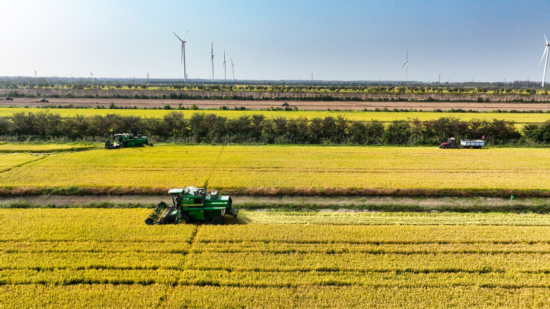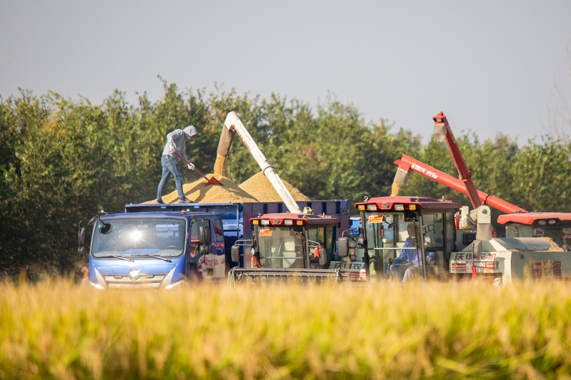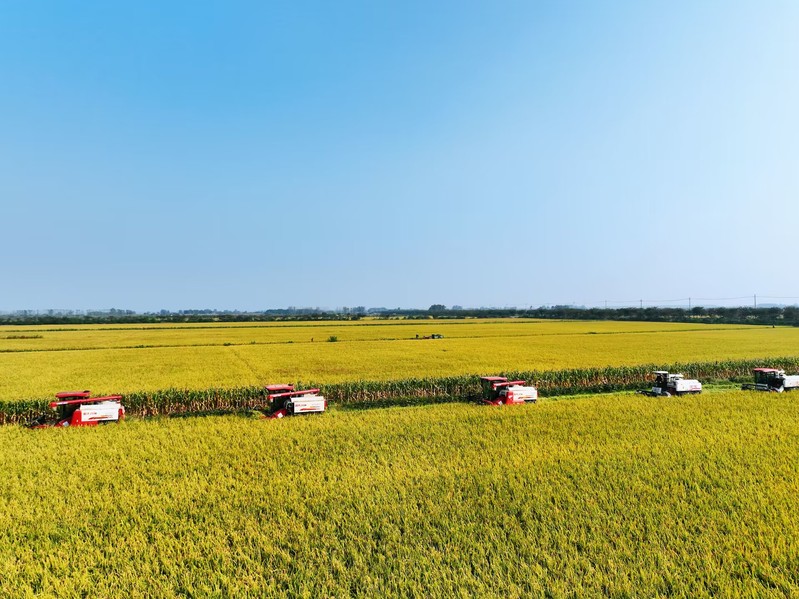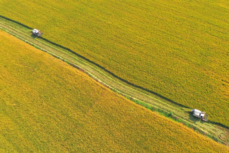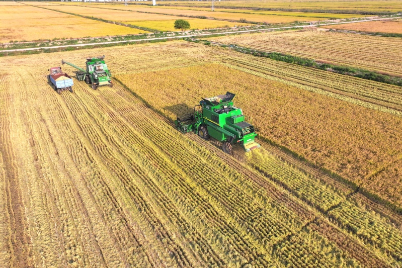秋風(fēng)拂過(guò),稻菽飄香。眼下,正值水稻收割季節(jié),云臺(tái)大地一片金黃。10月22日,蘇墾農(nóng)發(fā)云臺(tái)分公司6000余畝水稻開鐮收割,在田間奏響“豐收曲”。機(jī)械轟鳴,沉甸甸的稻穗被攬入“懷中”,收割、脫粒、裝車,飽滿的谷粒傾瀉而下,被裝進(jìn)運(yùn)糧車?yán)?,工作人員美滋滋地看著田間的稻谷被收割殆盡,空氣中彌漫著稻谷的醇香?!敖衲晡覀兊乃鹃L(zhǎng)勢(shì)好、產(chǎn)量高,和我們以‘繡花功夫’狠抓精細(xì)化管理是分不開的?!痹婆_(tái)農(nóng)場(chǎng)公司黨委副書記、蘇墾農(nóng)發(fā)云臺(tái)分公司總經(jīng)理宋光鋒在收割現(xiàn)場(chǎng)會(huì)滿意地說(shuō)道。鄉(xiāng)村振興的核心是產(chǎn)業(yè)興旺,現(xiàn)代農(nóng)業(yè)是云臺(tái)產(chǎn)業(yè)興旺的中堅(jiān)力量。近年來(lái),蘇墾農(nóng)發(fā)云臺(tái)分公司堅(jiān)持標(biāo)準(zhǔn)化生產(chǎn)方式,將技術(shù)、人才、信息等資源要素“引”向農(nóng)業(yè)、“流”向企業(yè),充分發(fā)揮國(guó)有農(nóng)業(yè)企業(yè)帶頭作用,為農(nóng)業(yè)產(chǎn)業(yè)發(fā)展注入新的活力。據(jù)了解,今年“三秋”,云臺(tái)將投入小型收割機(jī)20臺(tái)用于水稻收割,并投入播種機(jī)13臺(tái),預(yù)計(jì)本月28日全部收割完畢,稻茬小麥將于31日播種結(jié)束。下一步,云臺(tái)將扎實(shí)做好秋收秋種秋管工作,牢牢守住“糧袋子”,為推進(jìn)鄉(xiāng)村振興和糧食安全貢獻(xiàn)云臺(tái)力量。