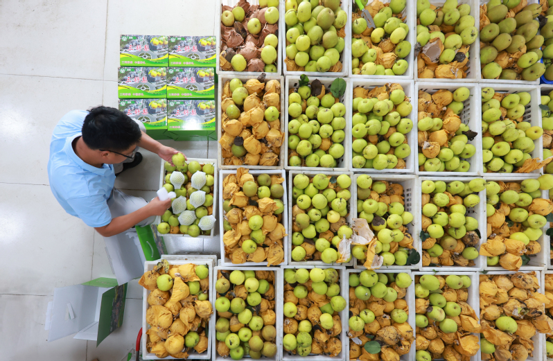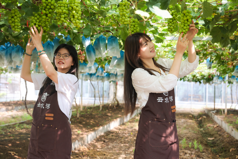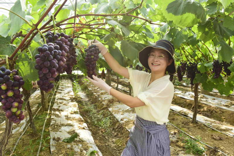8月3日,在射陽(yáng)縣淮海農(nóng)場(chǎng)高效園區(qū)5畝連棟高架大棚葡萄園內(nèi),碩大成串的葡萄綴滿枝頭,就連空氣中也彌漫著沁人心脾、清新的水果味,經(jīng)過(guò)園區(qū)工人的精心培育,一串串綠色或黑色晶瑩的葡萄掛在藤架上,令人垂涎欲滴。入口品嘗,個(gè)個(gè)飽滿多汁,甜而不膩。慕名來(lái)采摘觀光的游客,在葡萄園內(nèi)一邊抬頭觀賞、一邊低頭采摘(如圖),幸福的滋味綻放在臉龐。在葡萄園里,剛剛用微信掃碼后的淮海居民吉長(zhǎng)明興奮地說(shuō):“我每年都要來(lái)到園區(qū)買幾箱葡萄,這里的葡萄不僅口感好,果也大,讓城里的人也來(lái)嘗嘗我們農(nóng)場(chǎng)獨(dú)特的‘土特產(chǎn)’?!睋?jù)他講,每年城里的親朋好友每到這個(gè)季節(jié),就要托他買幾箱葡萄帶到城里去。據(jù)了解,園內(nèi)種植品種“夏黑”和“陽(yáng)光玫瑰”等葡萄品種,畝產(chǎn)量可達(dá)4000斤上下。特別是其統(tǒng)一施用農(nóng)家肥、無(wú)公害防蟲(chóng)防病、反光膜覆蓋、科學(xué)滴灌、疏果等措施,輔助于智能化的通風(fēng)調(diào)溫、噴淋調(diào)水和調(diào)節(jié)光照設(shè)施的開(kāi)展,合理調(diào)節(jié)土壤水分,降低田間溫、濕度,也減輕各類病蟲(chóng)害的侵襲,讓葡萄按規(guī)定設(shè)計(jì)的要求進(jìn)行掛果,確保種出安全、優(yōu)質(zhì)的葡萄提供給消費(fèi)者?!拔覀兊钠咸衙拷锸蹆r(jià)在8元/斤,一畝地毛收入可達(dá)20000元?!眻@區(qū)負(fù)責(zé)人解進(jìn)空說(shuō),“是良好的品質(zhì)和采摘