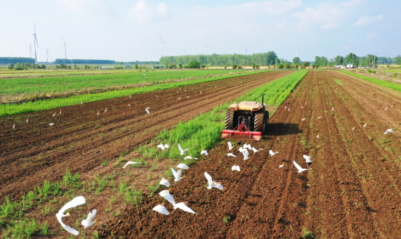 在蘇墾農(nóng)發(fā)東辛分公司的田間地頭,大豆玉米復(fù)合種植精量播種機緩緩駛?cè)臌溙?,有序完成播種、隔斷施肥等一體化作業(yè)。