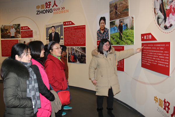 位于市區(qū)鹽瀆公園內(nèi)的好人館,集中展示了近年來全市涌現(xiàn)出的43位“中國好人”、62位“江蘇好人”和228位“鹽城好人”的典型事跡。“一個好人感動一座城,一群好人溫暖大家庭......涓涓之水匯成大海一樣奔涌,祝福你好人,幸福伴你一生”,聆聽著詩文、海濤作詞、常暢作曲的《好人贊》,觀看一幅幅肖像、一件件實物,點點滴滴折射出眾多平凡人的不平凡人生。助人為樂、誠實守信、見義勇為、孝老愛親、敬業(yè)奉獻等八個篇章的好人事跡,都很感人,催人奮進,女職工們紛紛表示,要向“好人”看齊、以“好人”為榜樣,積極傳播正能量,帶頭踐行社會主義核心價值觀,努力爭當“好人”,為弘揚中華民族傳統(tǒng)美德、創(chuàng)建和諧社會作出自己應有的貢獻。