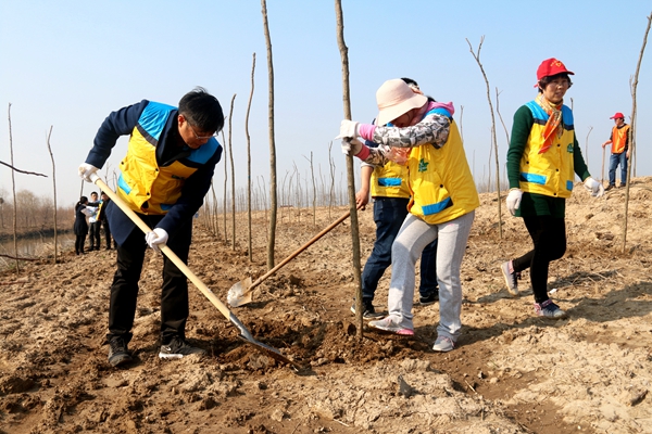 3月的新洋,春光旖旎,生機煥發(fā)。12日下午,150名志愿者分別集結新北生產區(qū)6大隊和7大隊防風林帶,僅40分鐘就植下重陽木和水杉共3000棵,為“綠色生態(tài)新洋”描繪出濃墨重彩的一筆。