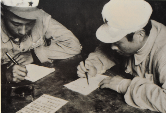 動員令下來后,全師各指戰(zhàn)員紛紛訂計劃,下決心學(xué)習(xí)。有的學(xué)員在學(xué)拼音時,怎么也拼不上,于是經(jīng)過輔導(dǎo)員的耐心幫助,他找到了竅門:“前音短,后音重,兩音相碰猛一沖。”兩個鐘點內(nèi)就把拼音全學(xué)會了,禁不住高興的跳起來。
