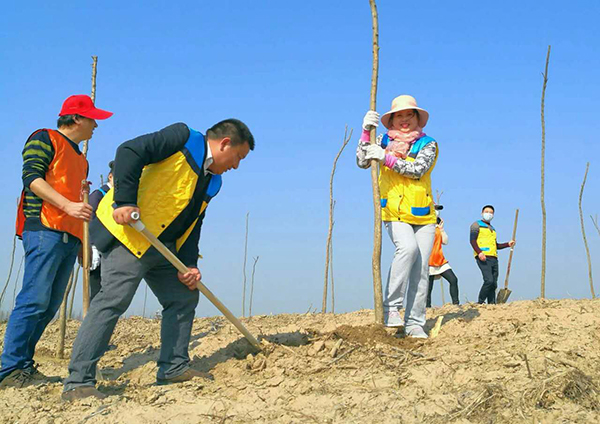 活動中,大家一派熱火朝天的忙碌景象。搬運(yùn)樹苗,揮鍬鏟土,扶苗填坑,踏土夯苗,三五人一組默契配合,你運(yùn)苗,我扶苗,他填土,認(rèn)真地完成著每一道工序,栽下一株株樹苗?;顒映掷m(xù)一個(gè)小時(shí),成功栽植3600余棵墨西哥落羽杉,取得了良好的成效。放眼望去,連片的樹苗錯落有致,在春風(fēng)的吹拂下煥發(fā)出盎然生機(jī)。此次活動的圓滿完成,為改善生態(tài)環(huán)境、助推綠色發(fā)展揮鋤添綠,吹響了全場大綠化攻堅(jiān)戰(zhàn)號角。