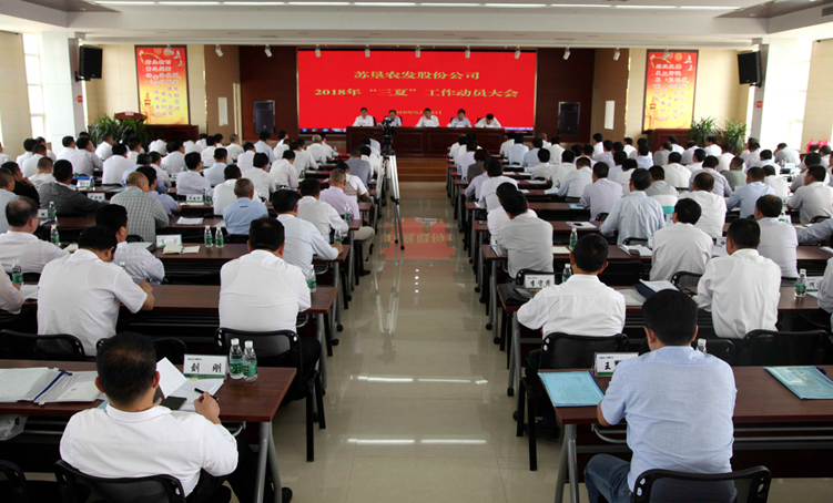 5月28日,蘇墾農(nóng)發(fā)股份公司2018年“三夏”工作動員大會在黃海分公司召開。集團公司總經(jīng)理、蘇墾農(nóng)發(fā)股份公司董事長胡兆輝主持會議并講話。集團公司黨委委員、蘇墾農(nóng)發(fā)股份公司總裁蘇志富作“三夏”工作動員報告,蘇墾農(nóng)發(fā)股份公司副總裁許峰宣讀“三夏”工作意見。