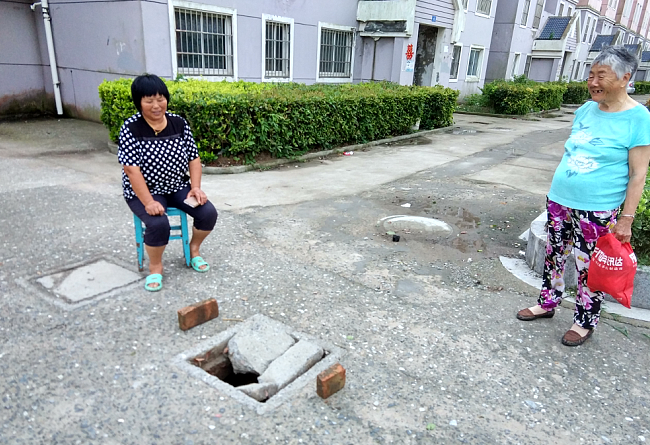 昨天,家住射陽縣淮海農(nóng)場淮海路19號樓門面房中的農(nóng)場居民賈長梅,傍晚發(fā)現(xiàn)樓道口間交通要道上的窨井蓋不知何時被過往的車輛壓壞了,知道這是安全隱患的的她,連忙拿來兩塊磚頭放在前后位置,又覺得不妥,就搬來了凳子,一邊坐在旁邊看護,一邊叫人聯(lián)系社區(qū)管理人員前來修復。